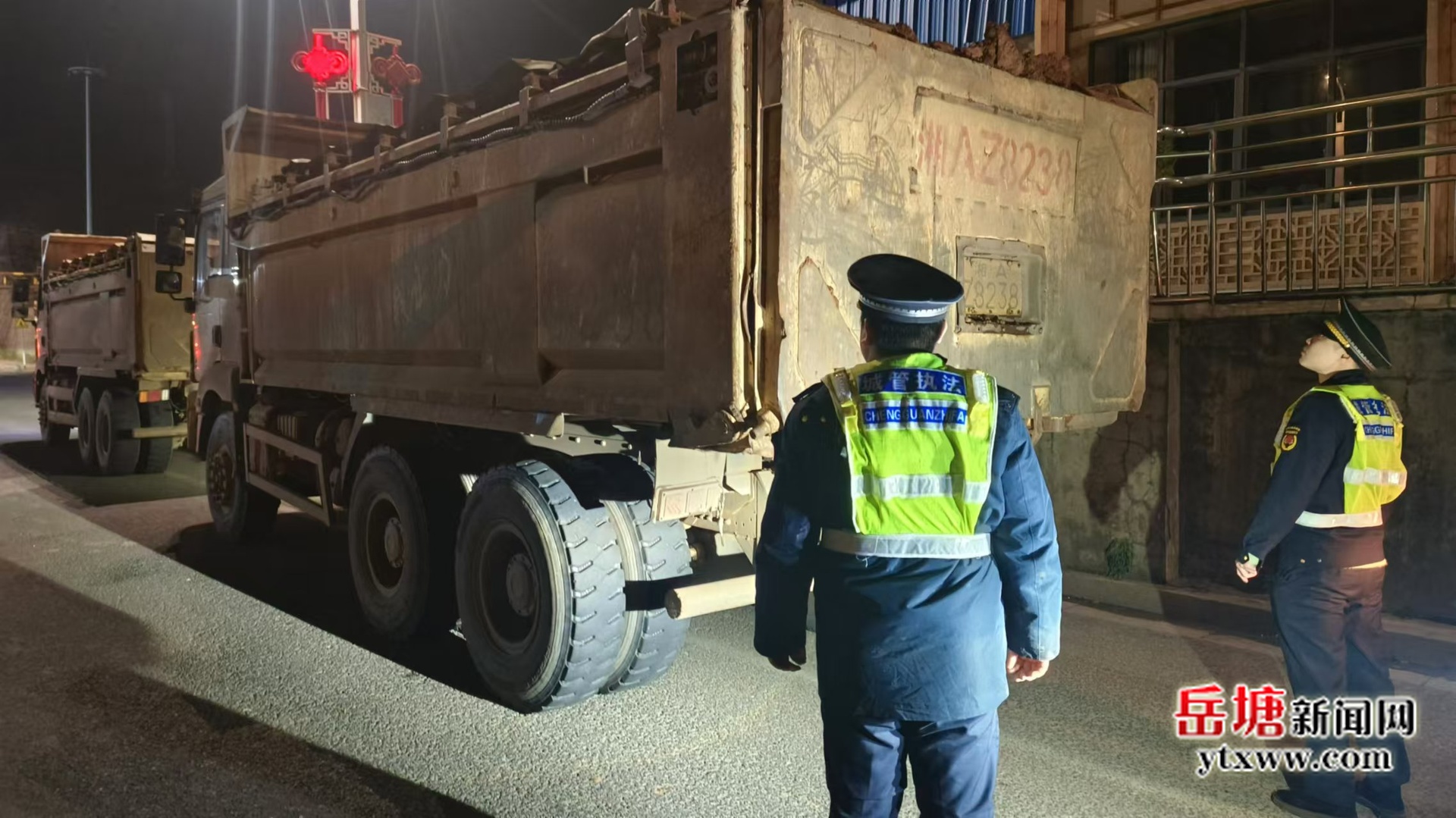 治理工作堅持全天候、全覆蓋巡查監(jiān)管。白天重點督查工地圍墻噴淋、霧炮機(jī)等降塵設(shè)施是否開啟,督促落實進(jìn)出口保潔與灑水;夜間則嚴(yán)查運(yùn)輸車輛“凈車出場”,防止帶泥上路污染路面。針對居民密集區(qū)旁的敏感項目,如東方名苑高六號樓,岳塘大隊渣土中隊主動協(xié)調(diào)項目方優(yōu)化作業(yè)時間、強(qiáng)化清洗力度、調(diào)整運(yùn)輸路線,實現(xiàn)了防塵與降噪的雙重管控。